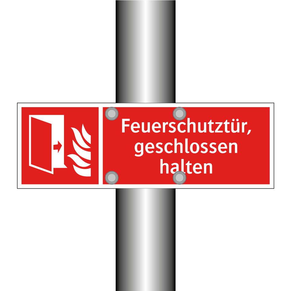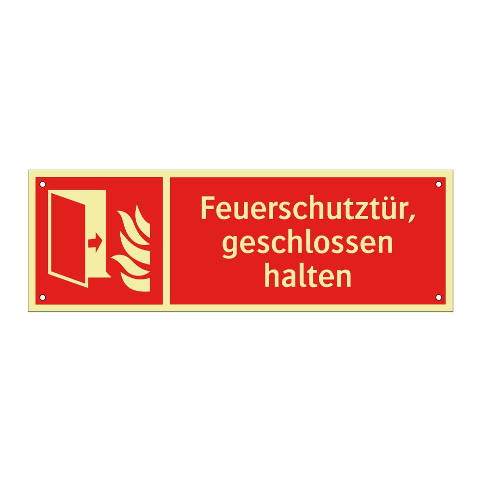 Brandschutzschild mit dem Text Feuerschutztür, geschlossen halten