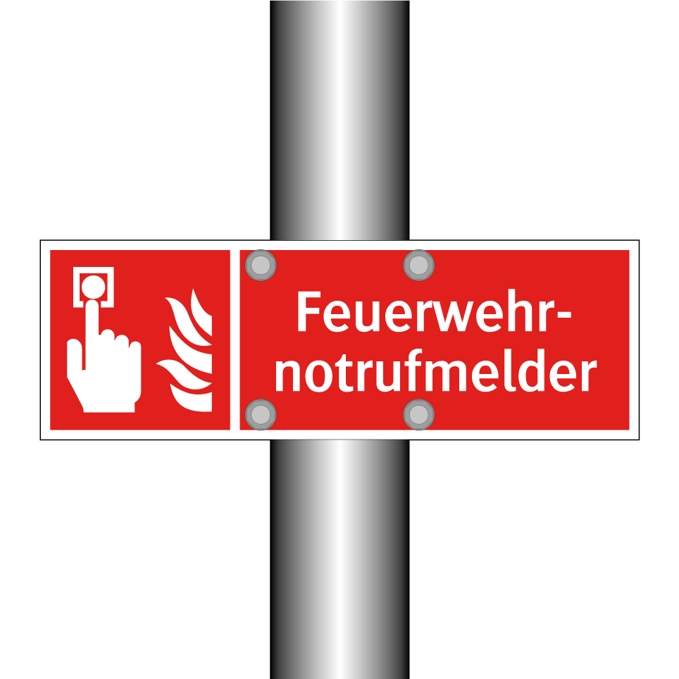 Brandschutzschild mit dem Text Feuerwehr- notrufmelder