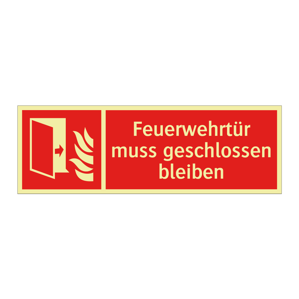 Brandschutzschild mit dem Text Feuerwehrtür muss geschlossen bleiben