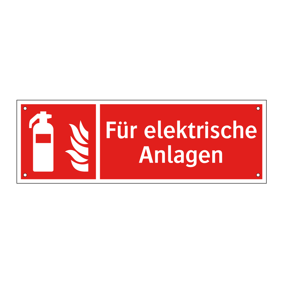 Brandschutzschild mit dem Text Für elektrische Anlagen