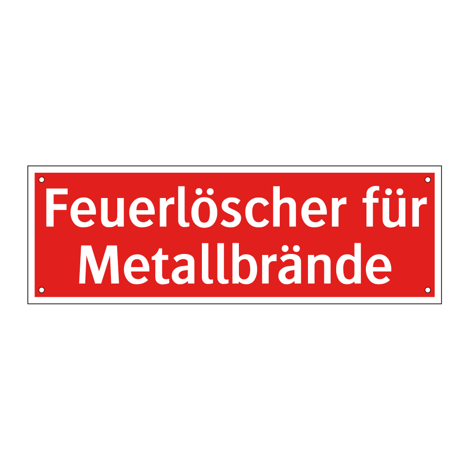 Entdecken Sie die vielseitigen Einsatzmöglichkeiten unseres Brandschutzschilds mit rotem Hintergrund und weißer Schrift. Diese Brandschutzkennzeichnung ist ideal für den Einsatz in Industrieanlagen, Werkstätten oder Lagerhallen, wo spezielle Feuerlöscher für Metallbrände erforderlich sind. Platzieren Sie das Schild gut sichtbar in der Nähe von Feuerlöschern, um im Notfall eine schnelle Orientierung zu gewährleisten. Es dient als unverzichtbare Sicherheitsmaßnahme, um im Ernstfall schnell und effektiv handeln zu können. Durch die klare und auffällige Gestaltung wird die Aufmerksamkeit sofort auf die wichtige Information gelenkt, was die Sicherheit in Ihrem Betrieb erhöht.