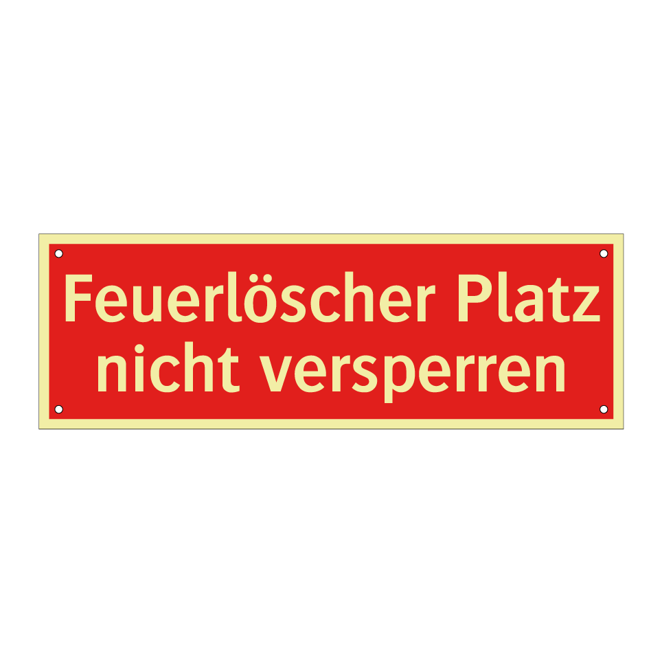 Brandschutzschild mit dem Text Feuerlöscher Platz nicht versperren