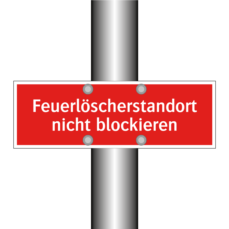 Brandschutzschild mit dem Text Feuerlöscherstandort nicht blockieren