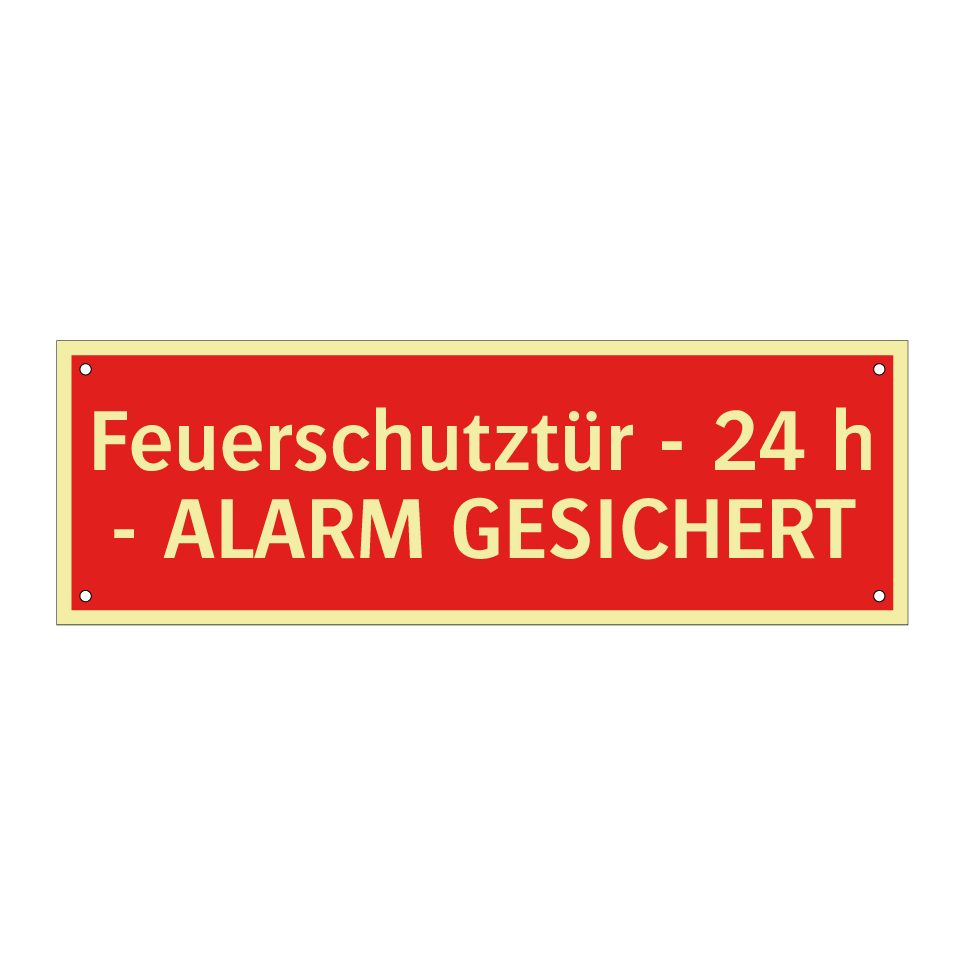 Brandschutzschild mit dem Text Feuerschutztür - 24 h - ALARM GESICHERT