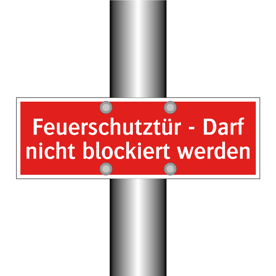 Brandschutzschild mit dem Text Feuerschutztür - Darf nicht blockiert werden