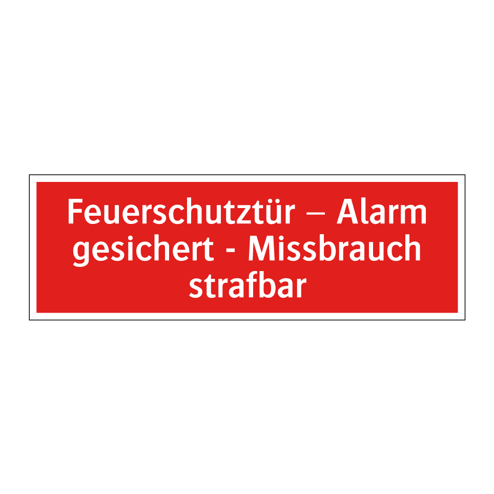 Brandschutzschild mit dem Text Feuerschutztür – Alarm gesichert - Missbrauch strafbar