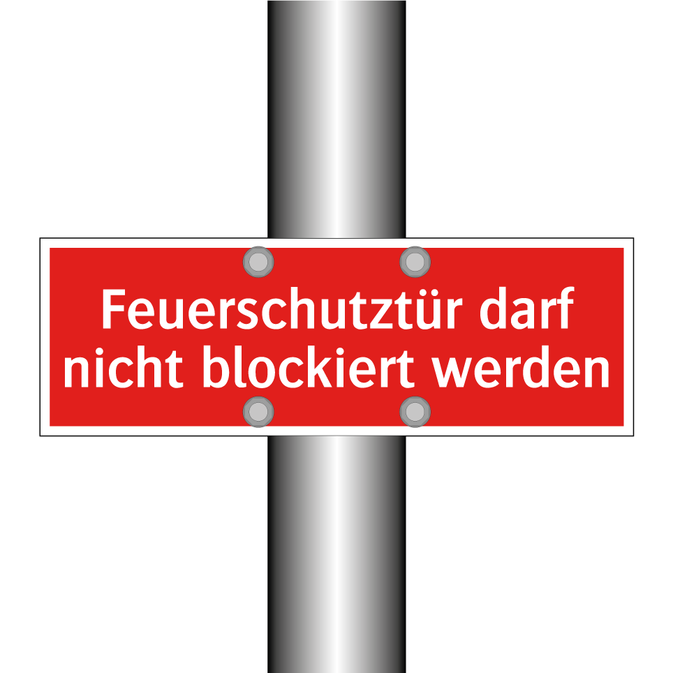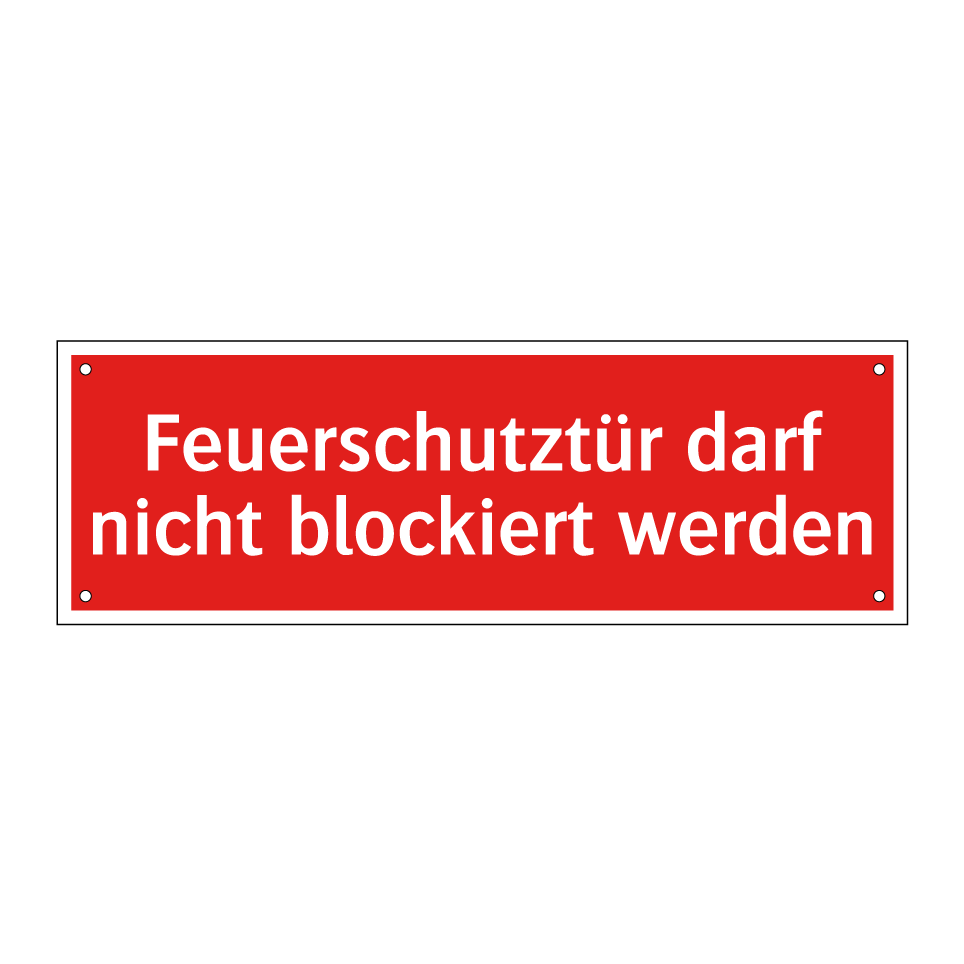 Brandschutzschild mit dem Text Feuerschutztür darf nicht blockiert werden