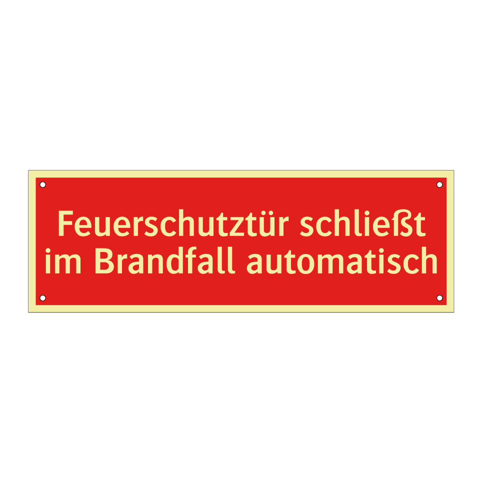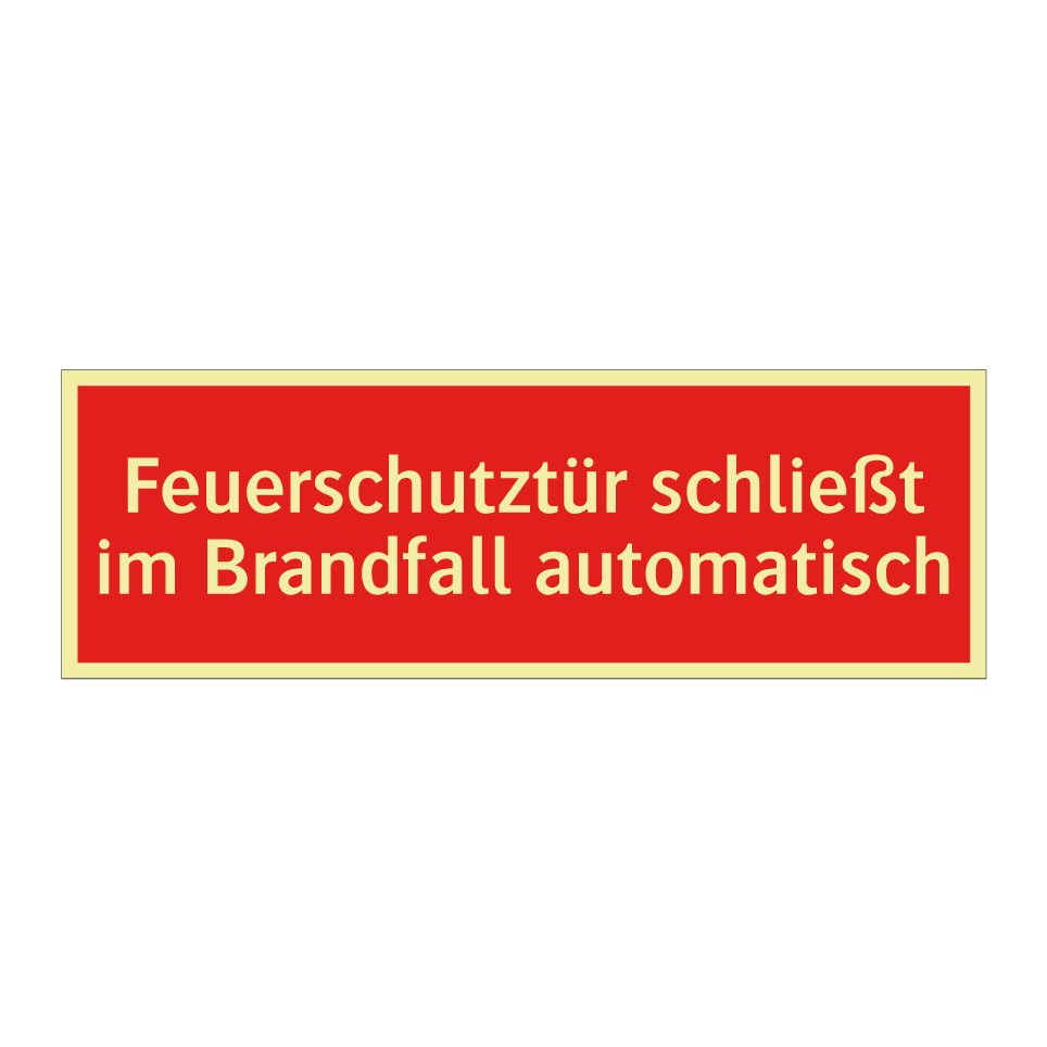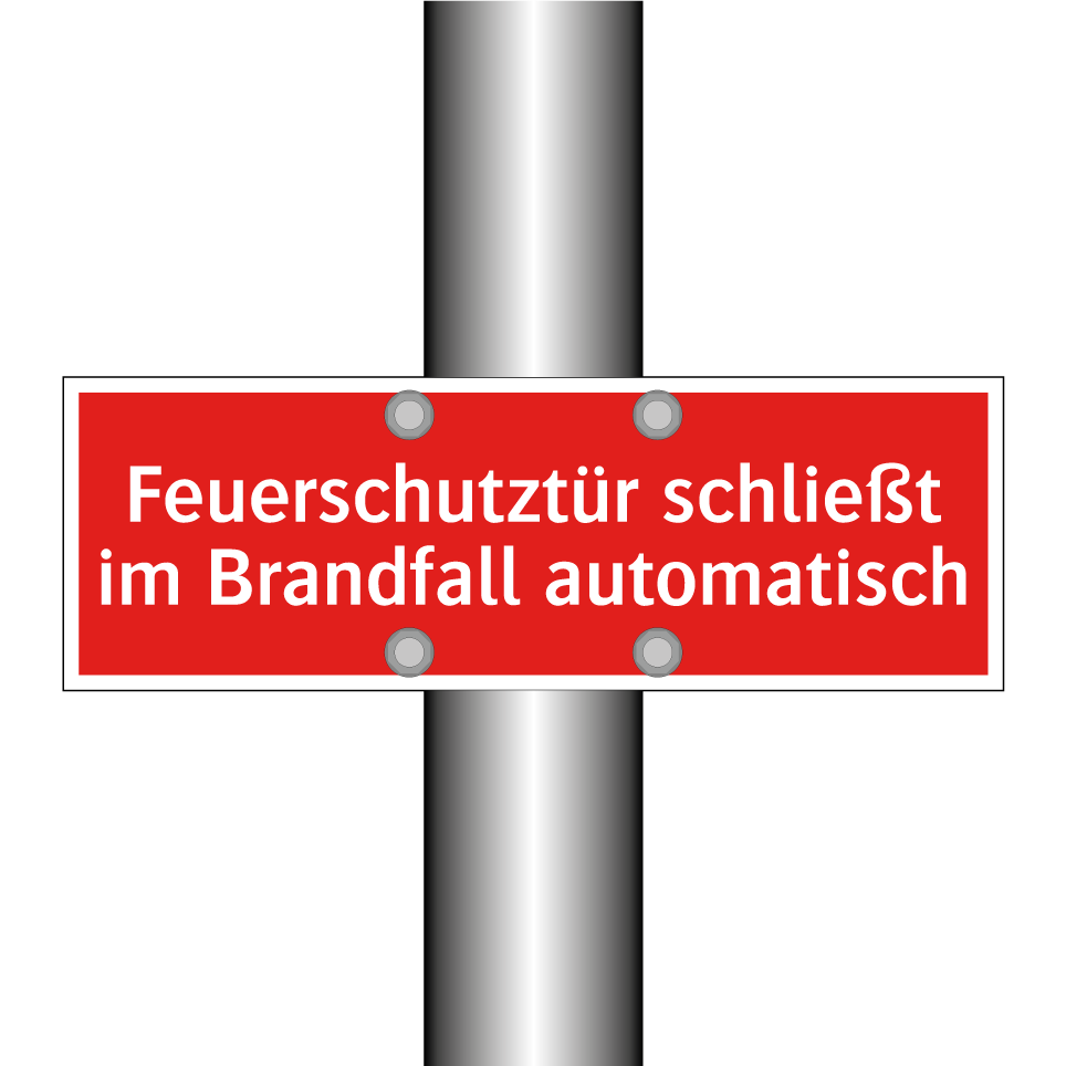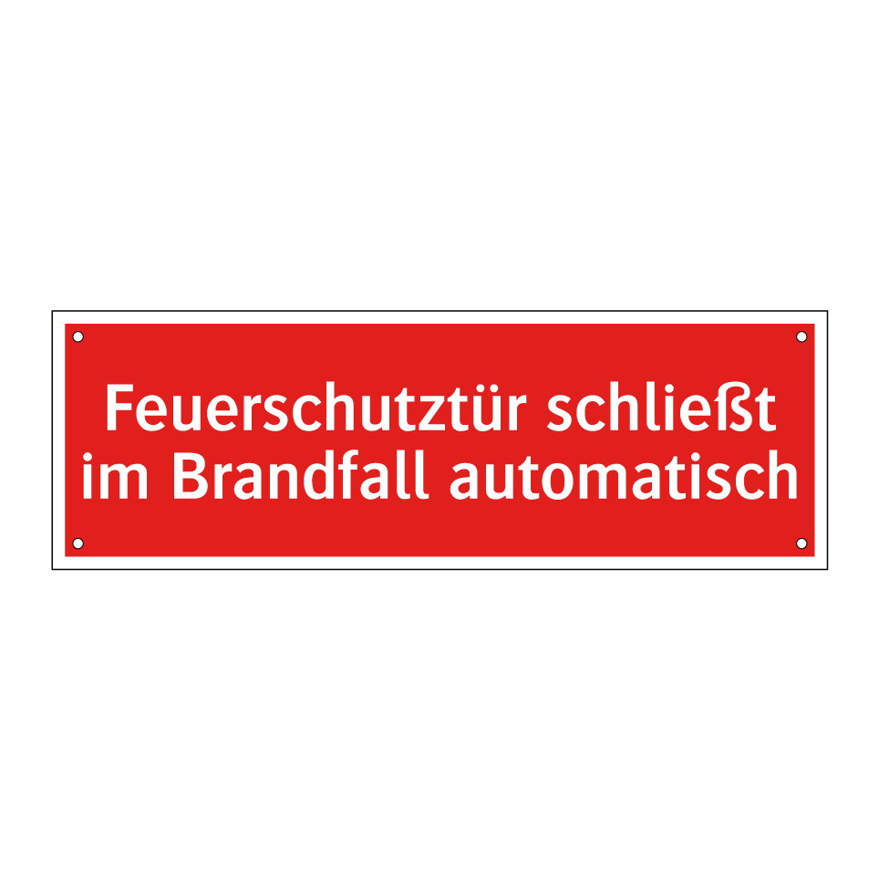 Brandschutzschild mit dem Text Feuerschutztür schließt im Brandfall automatisch