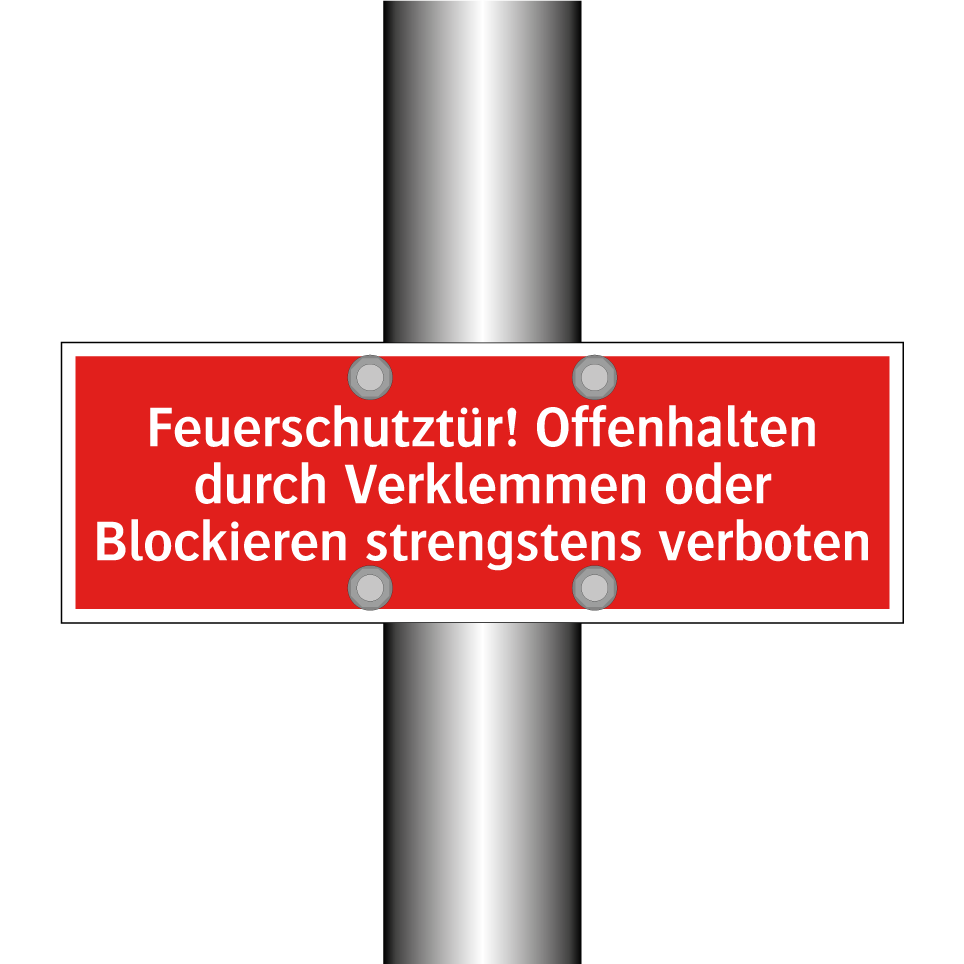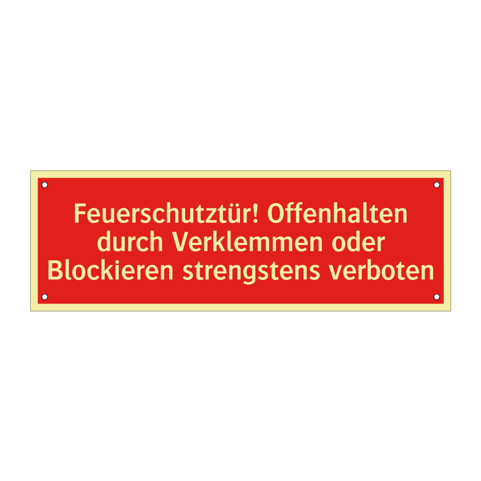 Brandschutzschild mit dem Text Feuerschutztür! Offenhalten durch Verklemmen oder Blockieren strengstens verboten