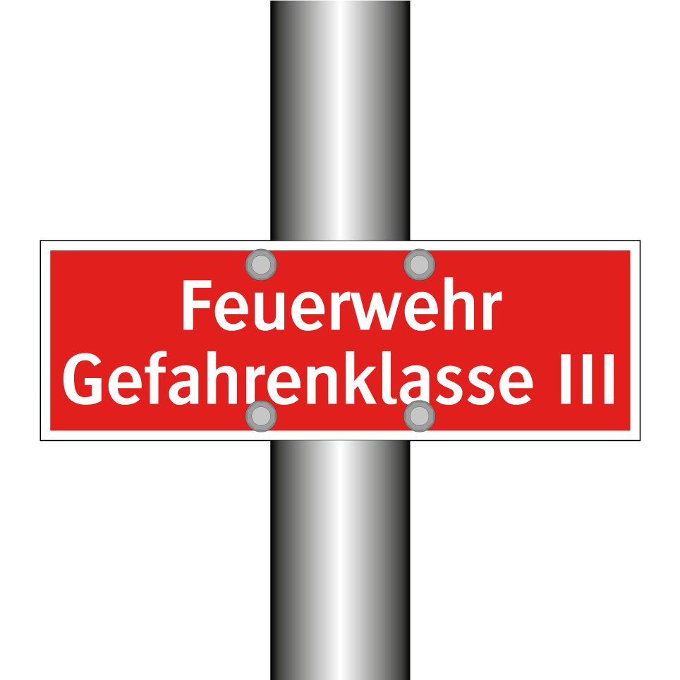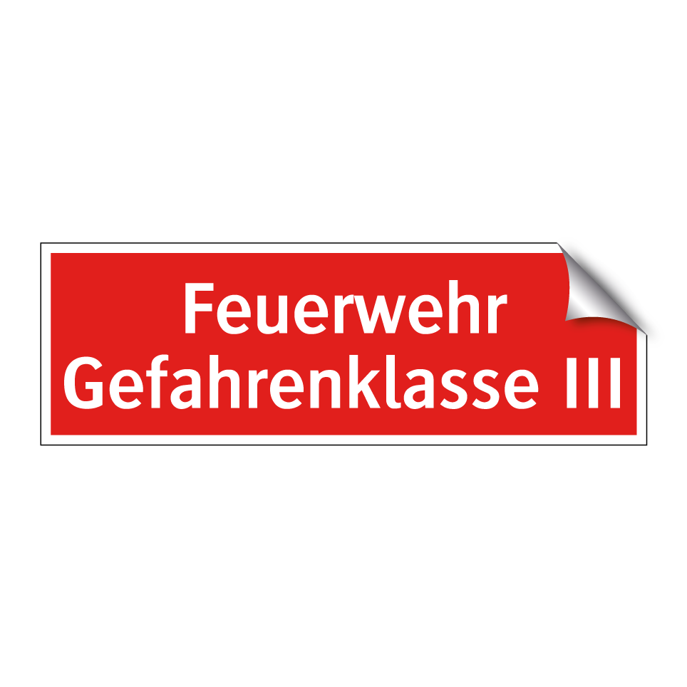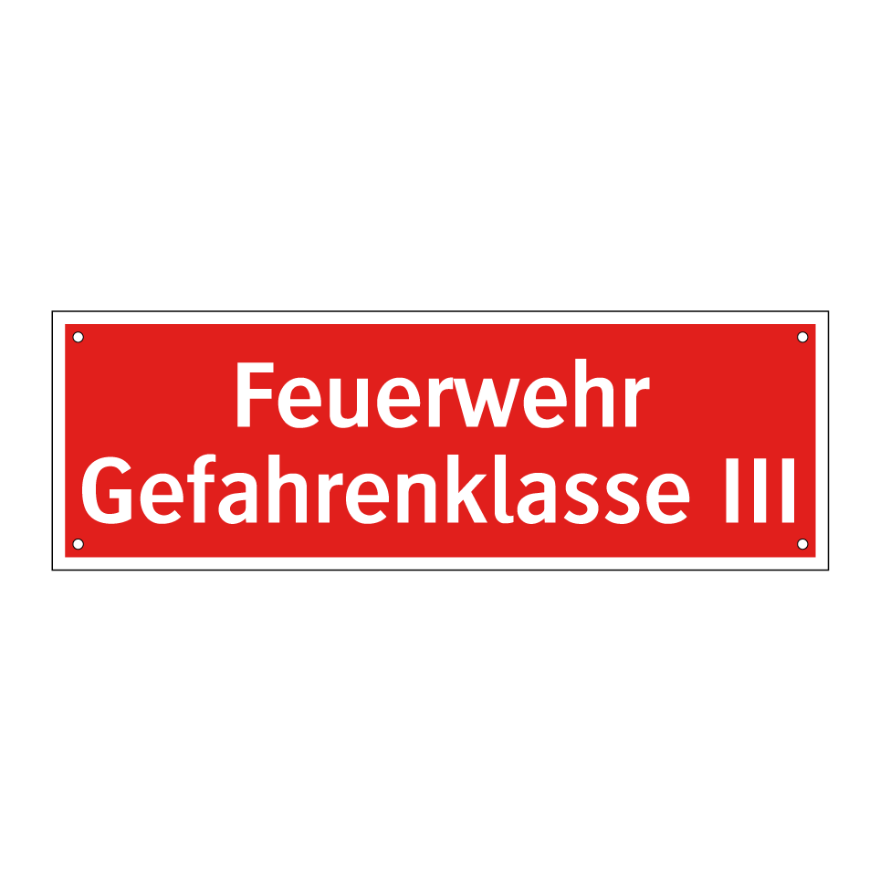 Brandschutzschild mit dem Text Feuerwehr Gefahrenklasse III