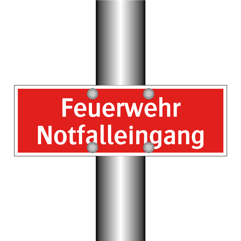 Brandschutzschild mit dem Text Feuerwehr Notfalleingang