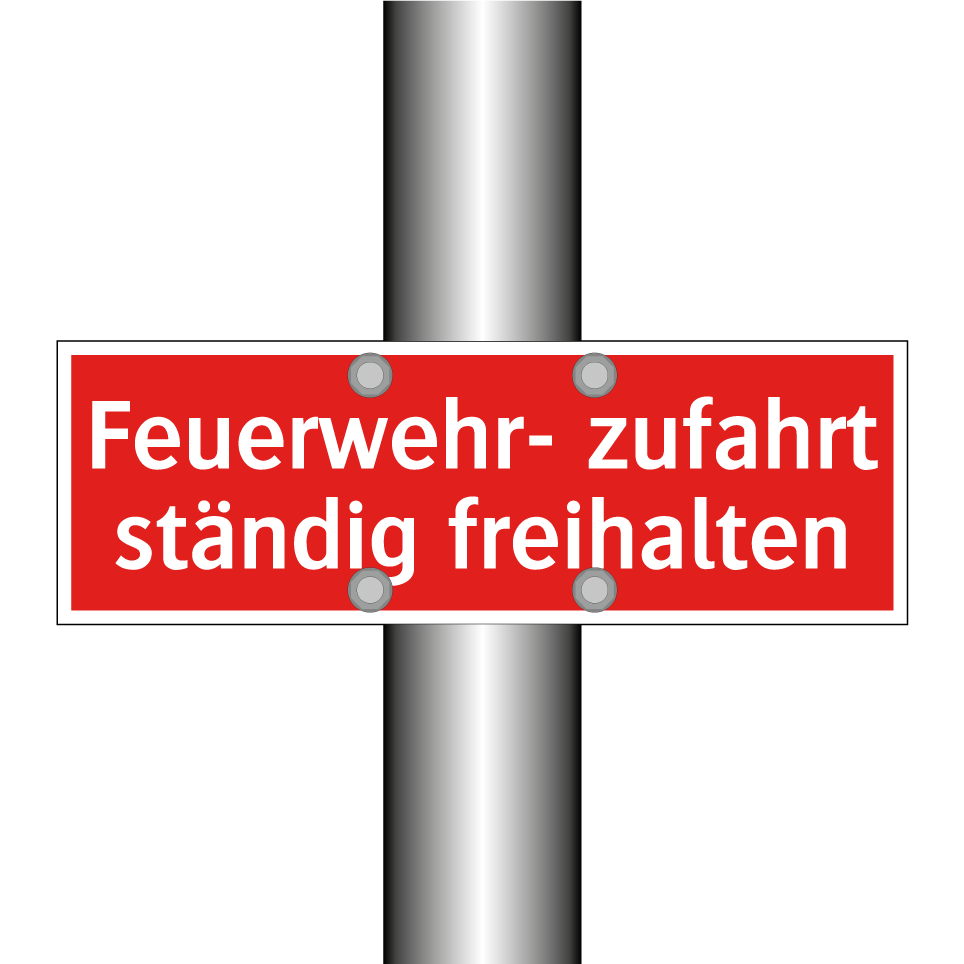 Brandschutzschild mit dem Text Feuerwehr- zufahrt ständig freihalten