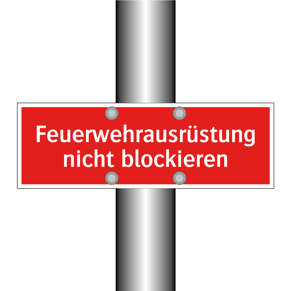 Brandschutzschild mit dem Text Feuerwehrausrüstung nicht blockieren