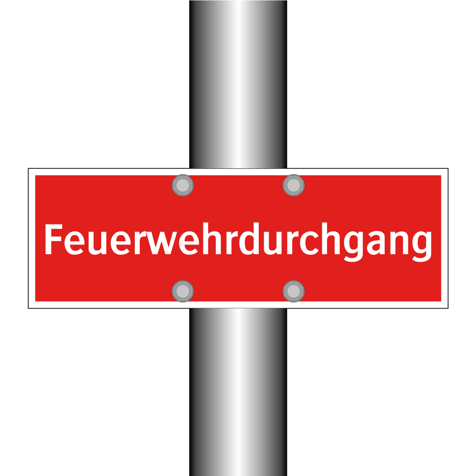 Brandschutzschild mit dem Text Feuerwehrdurchgang