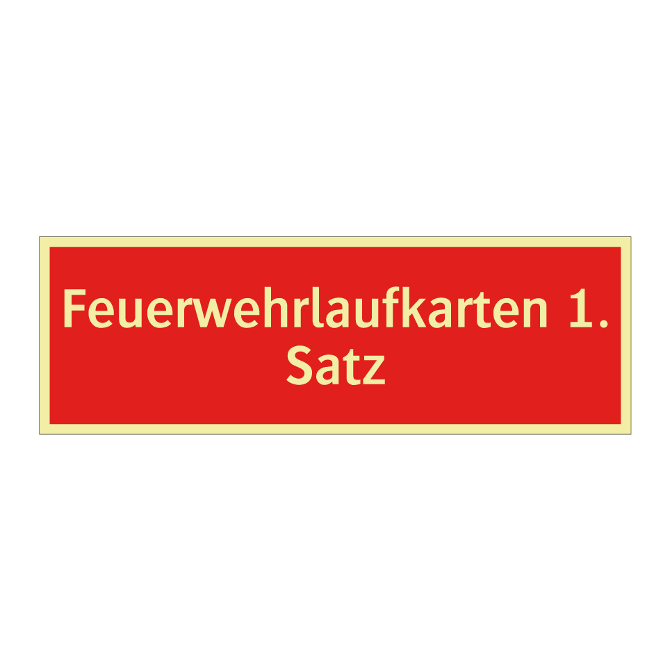 Brandschutzschild mit dem Text Feuerwehrlaufkarten 1. Satz