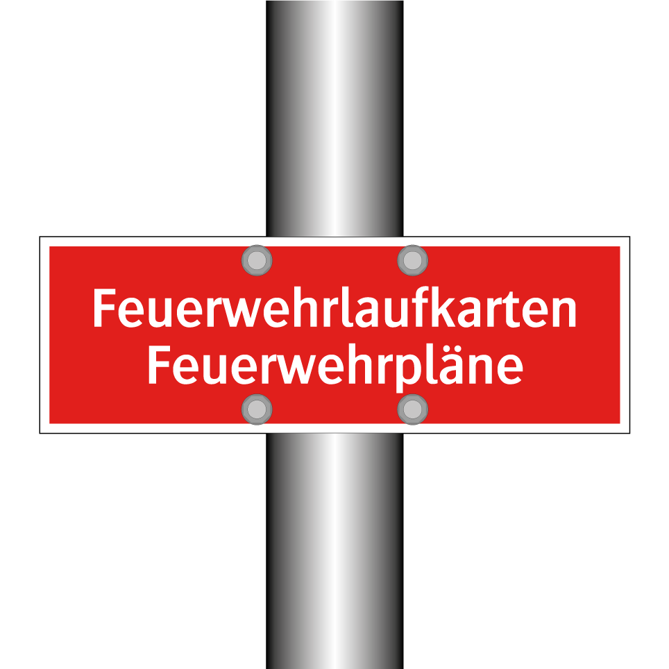 Brandschutzschild mit dem Text Feuerwehrlaufkarten Feuerwehrpläne