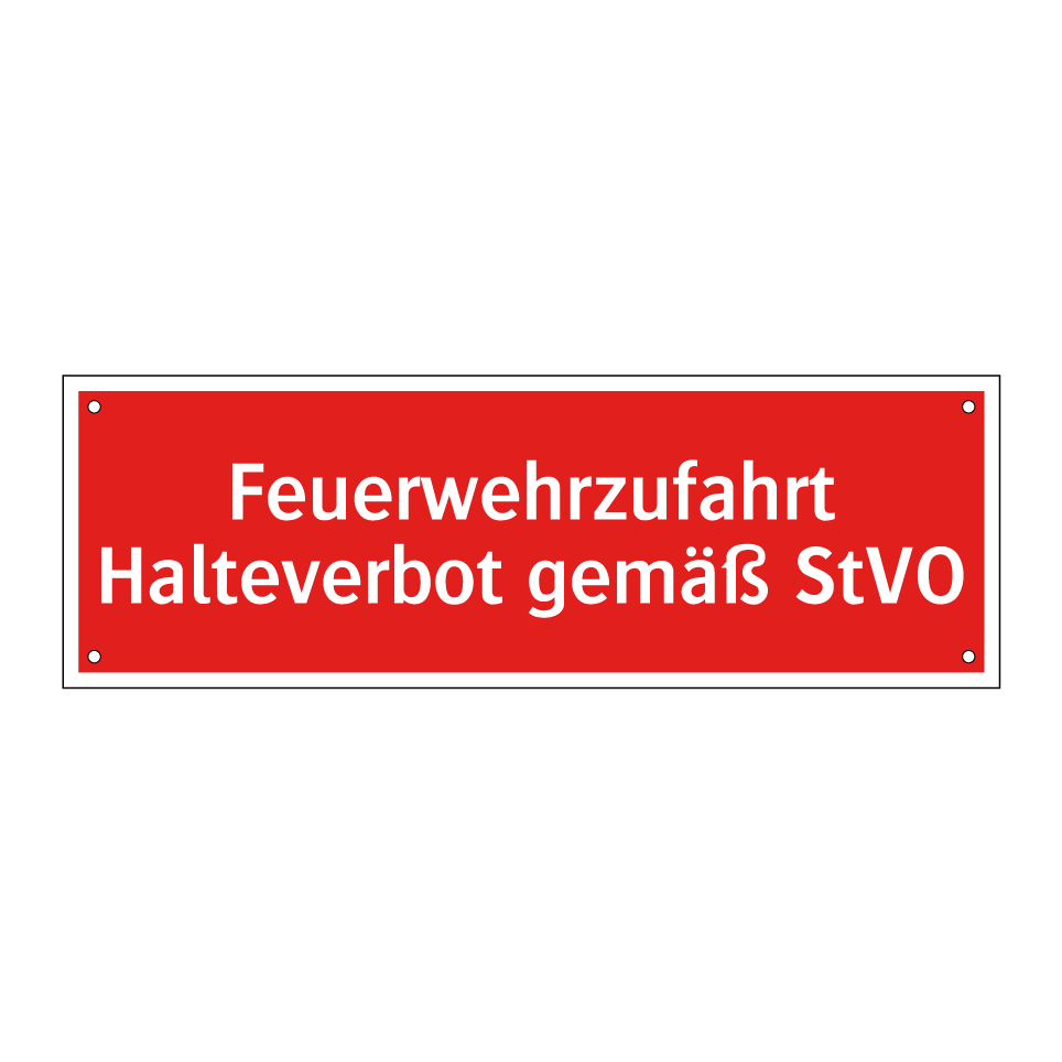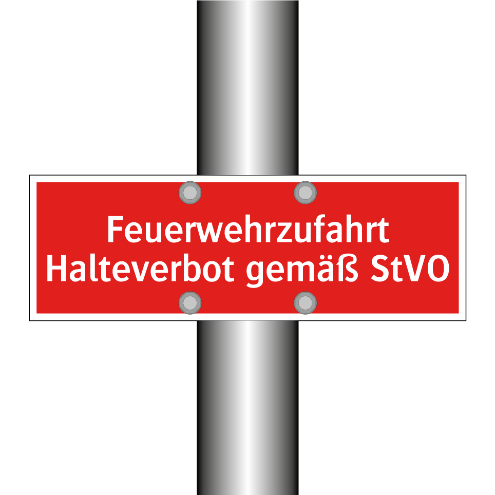 Brandschutzschild mit dem Text Feuerwehrzufahrt Halteverbot gemäß StVO