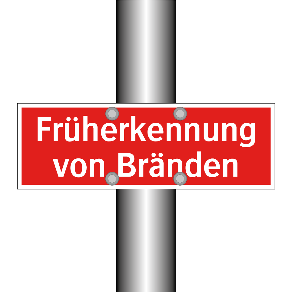 Brandschutzschild mit dem Text Früherkennung von Bränden