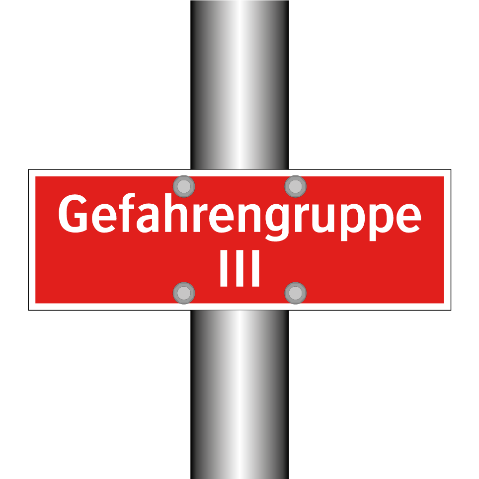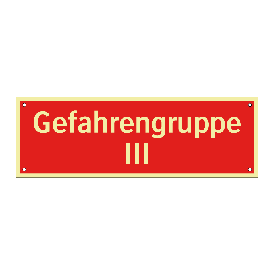 Brandschutzschild mit dem Text Gefahrengruppe III
