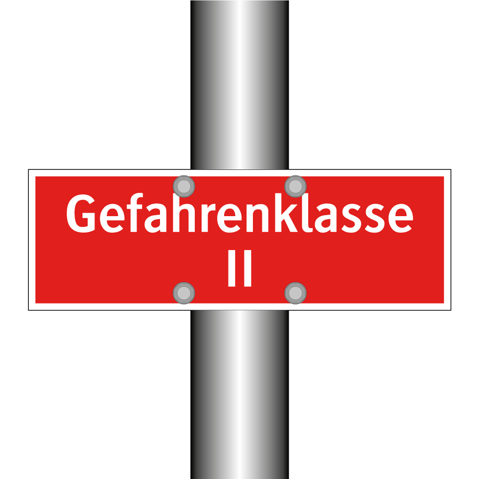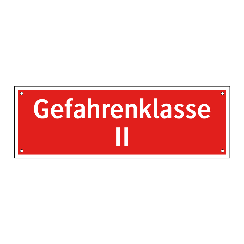 Brandschutzschild mit dem Text Gefahrenklasse II