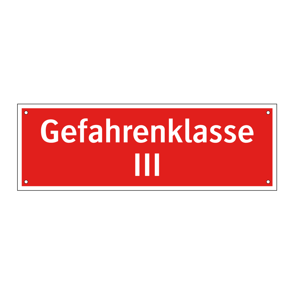 Brandschutzschild mit dem Text Gefahrenklasse III