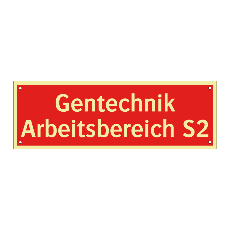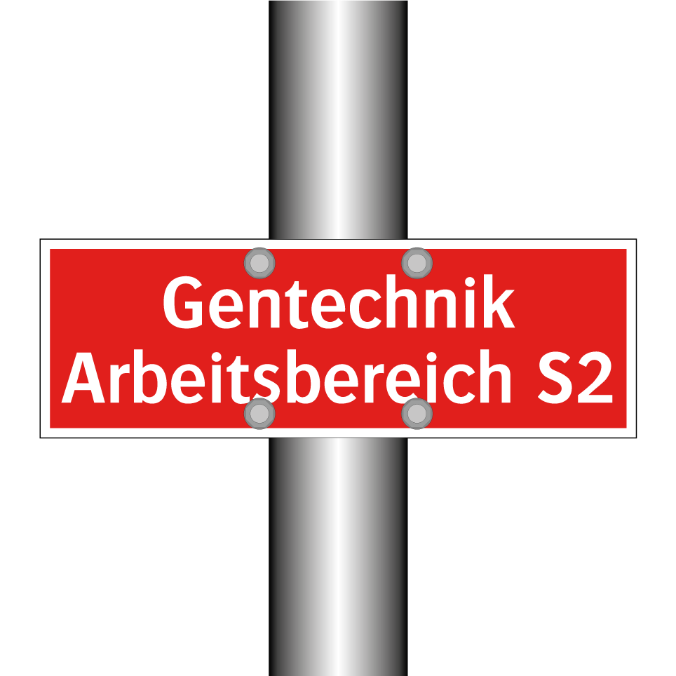 Brandschutzschild mit dem Text Gentechnik Arbeitsbereich S2
