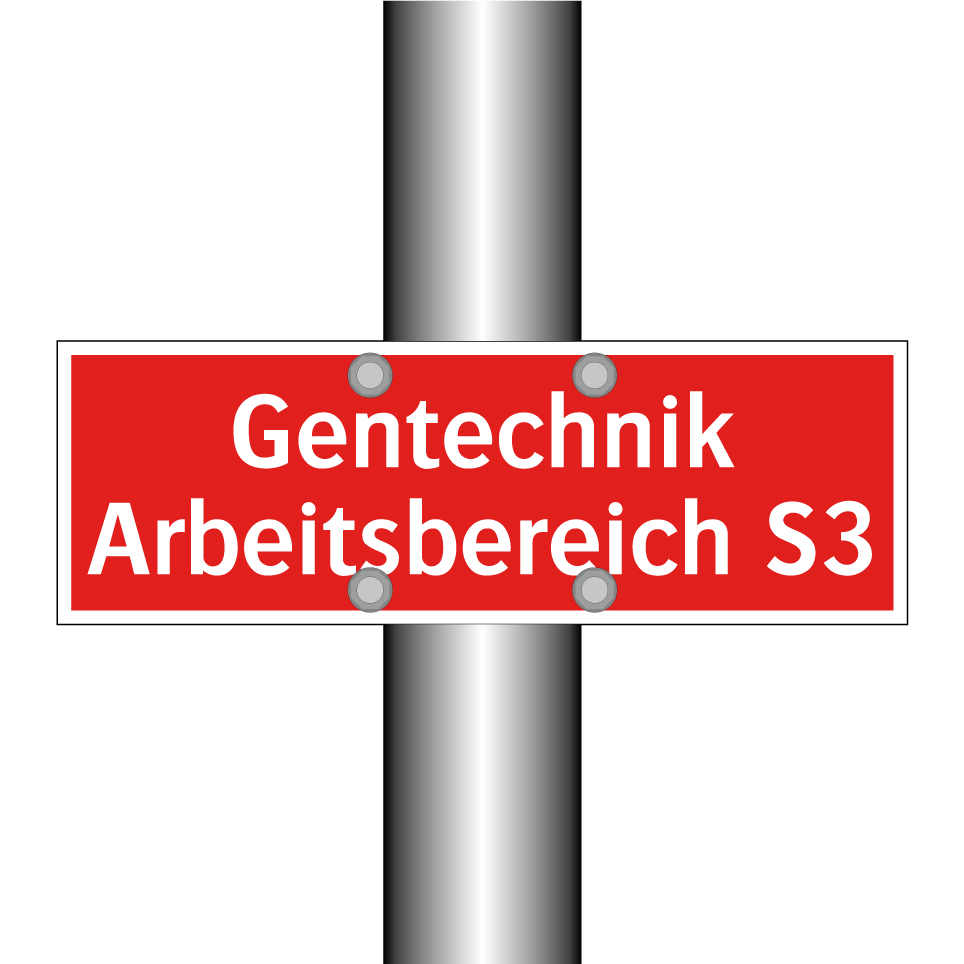 Brandschutzschild mit dem Text Gentechnik Arbeitsbereich S3