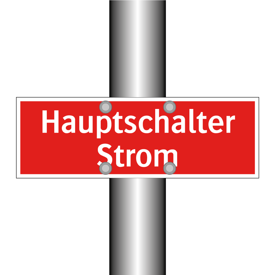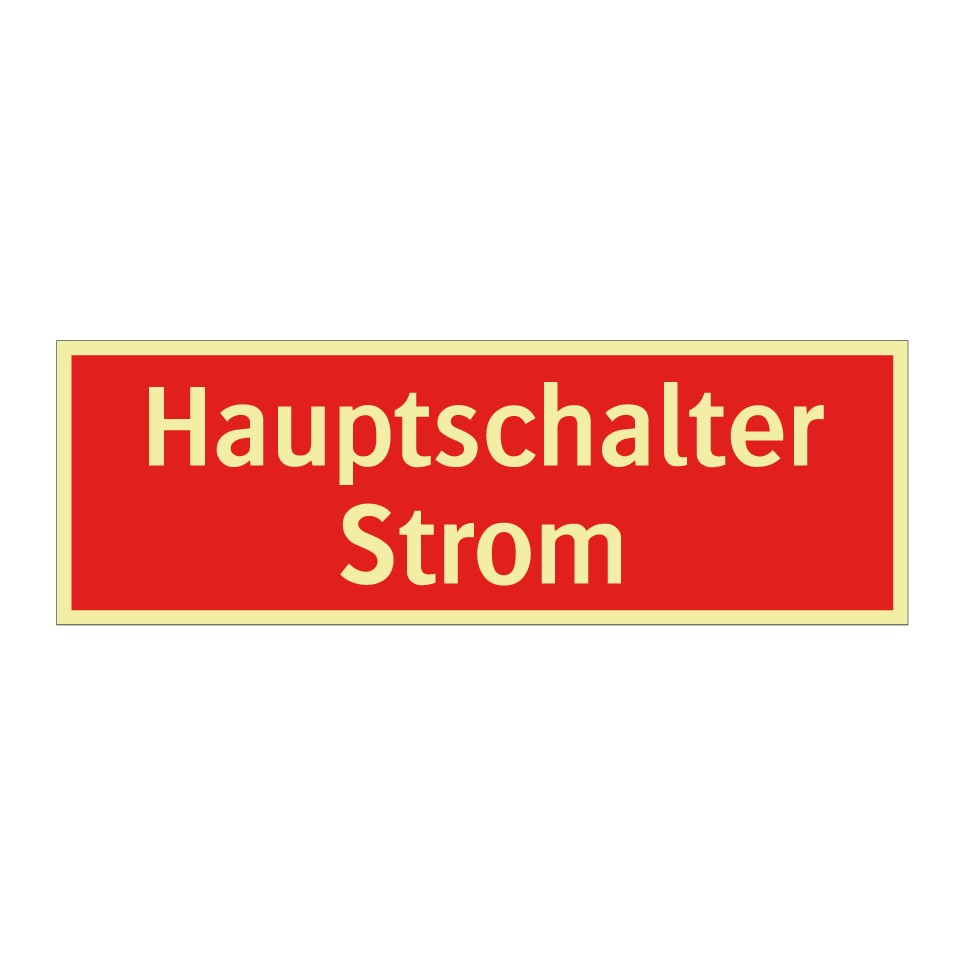 Brandschutzschild mit dem Text Hauptschalter Strom