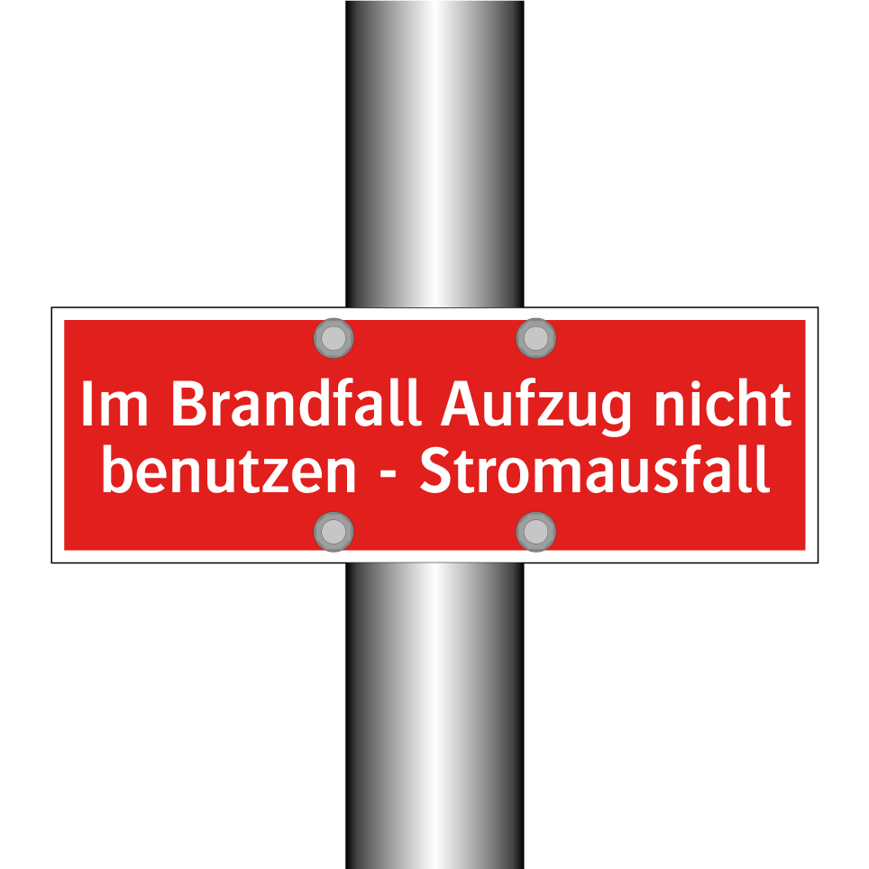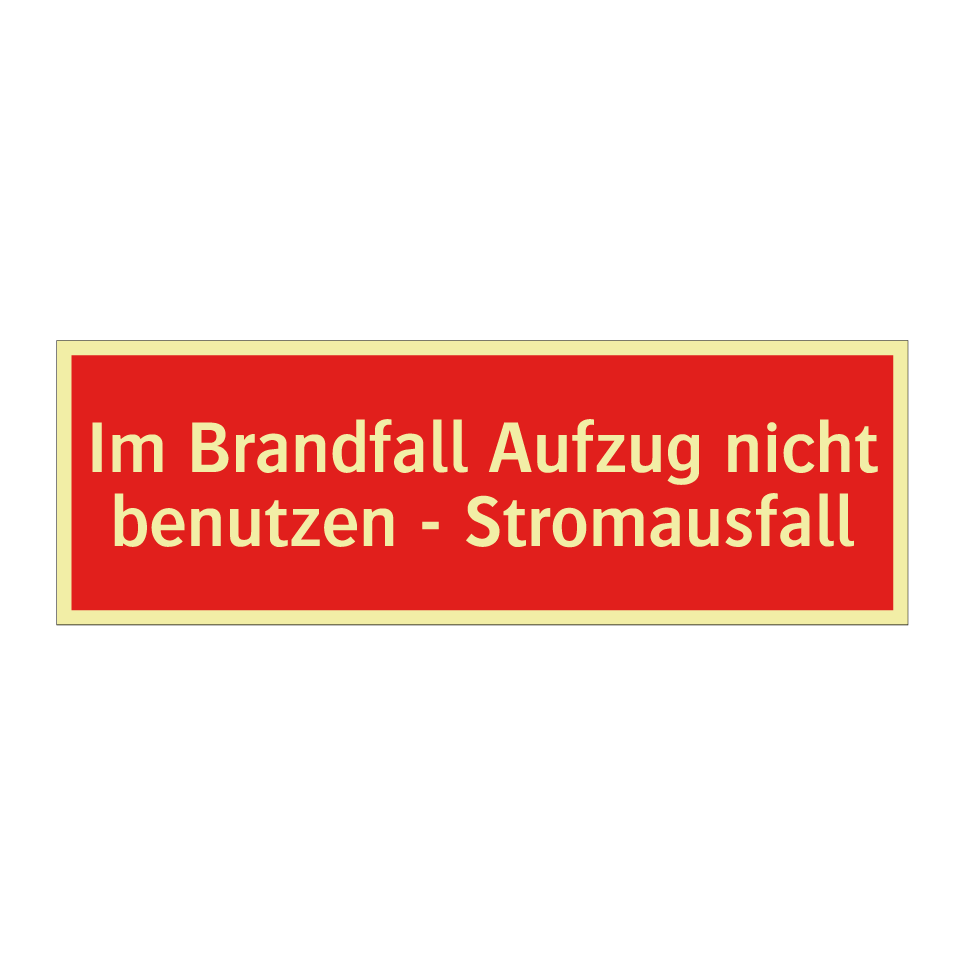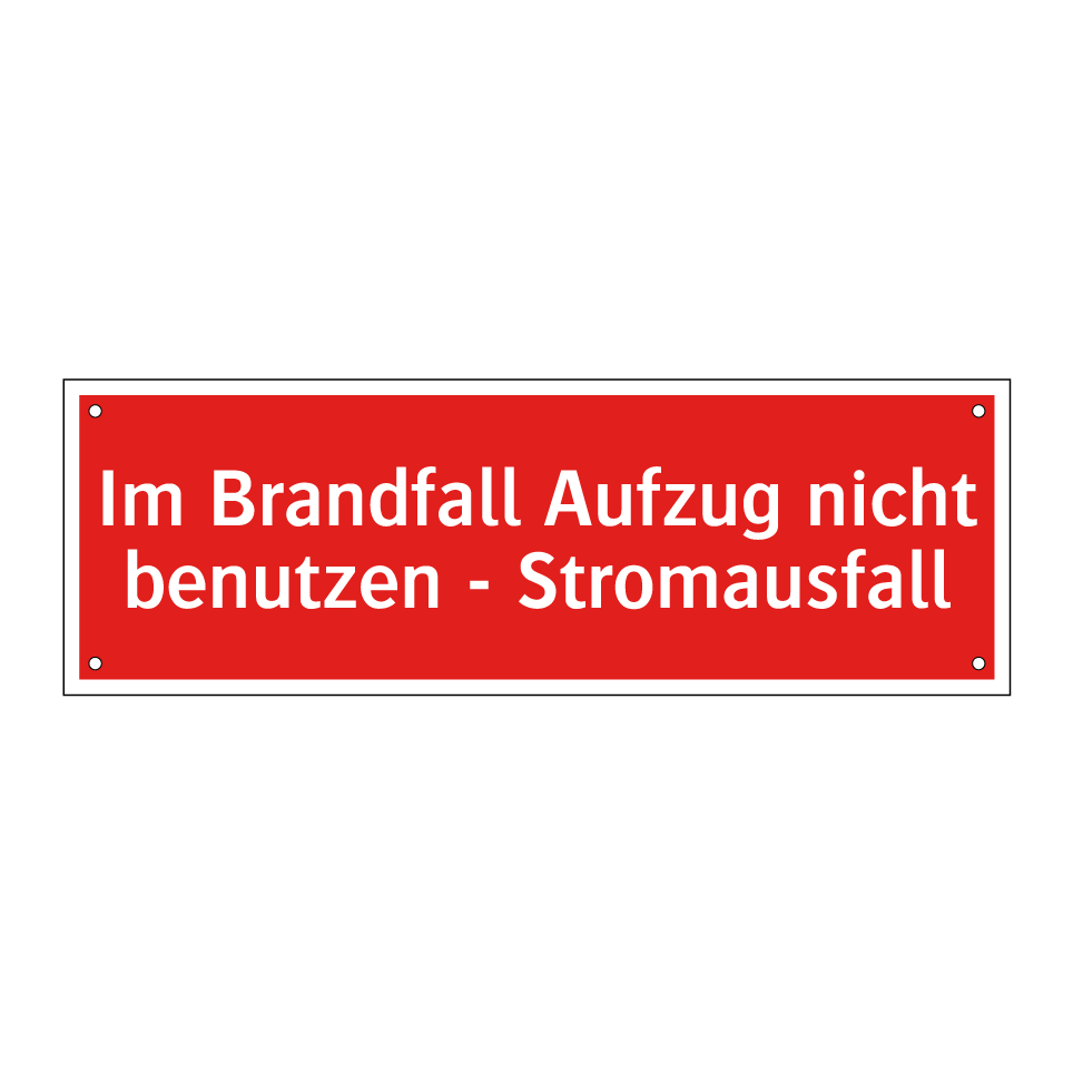 Brandschutzschild mit dem Text Im Brandfall Aufzug nicht benutzen - Stromausfall