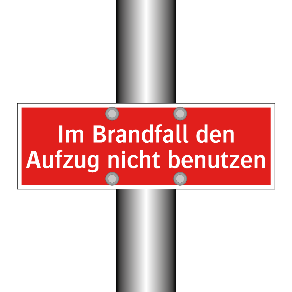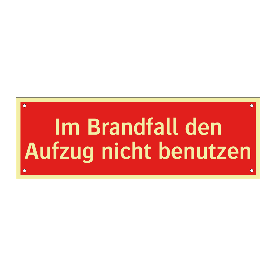 Brandschutzschild mit dem Text Im Brandfall den Aufzug nicht benutzen