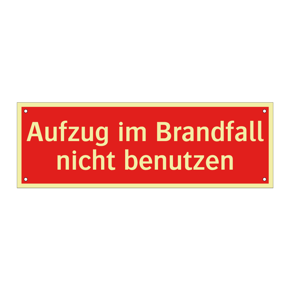 Brandschutzschild mit dem Text Aufzug im Brandfall nicht benutzen