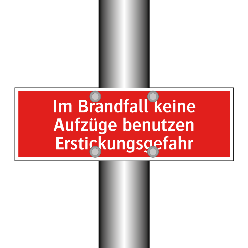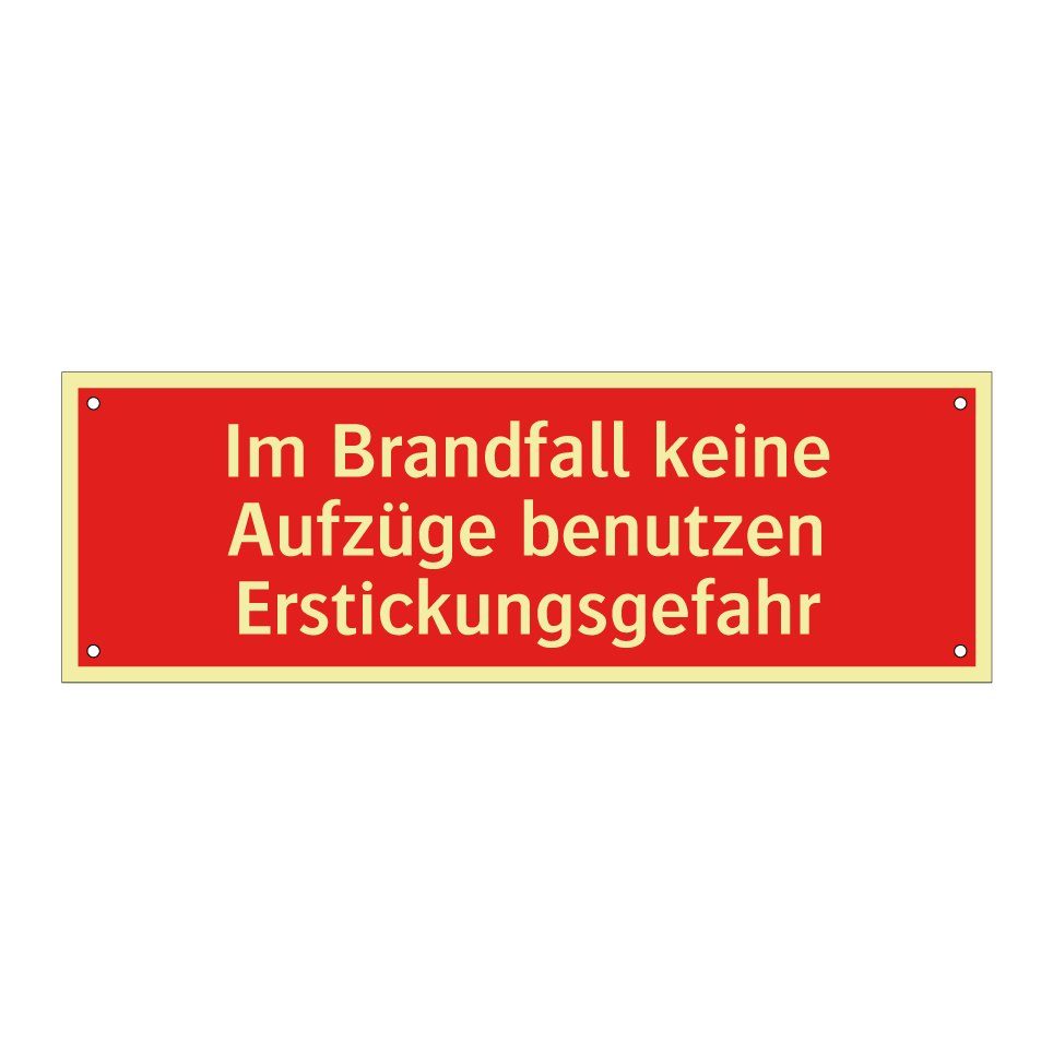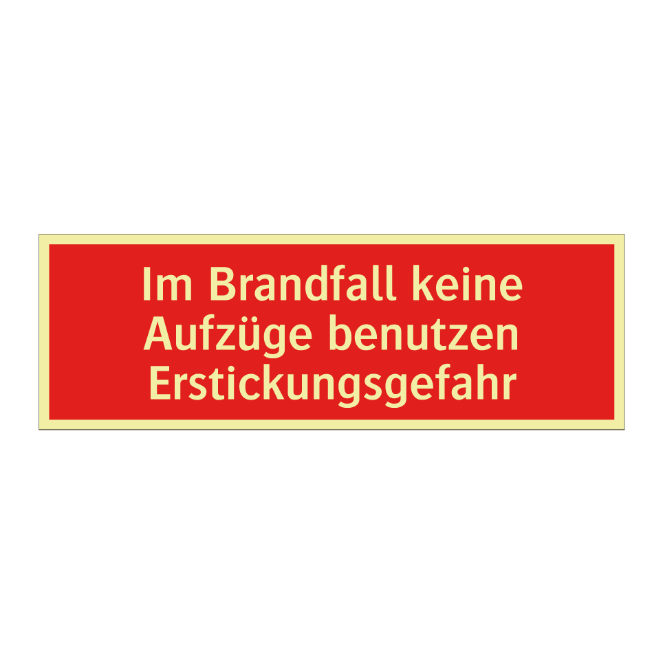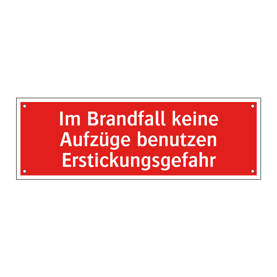 Brandschutzschild mit dem Text Im Brandfall keine Aufzüge benutzen Erstickungsgefahr
