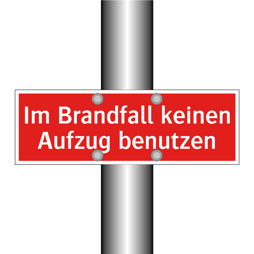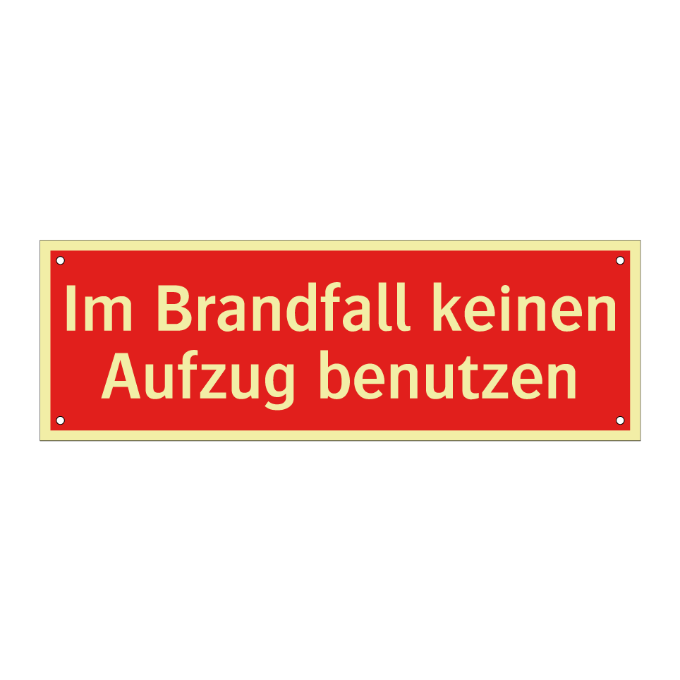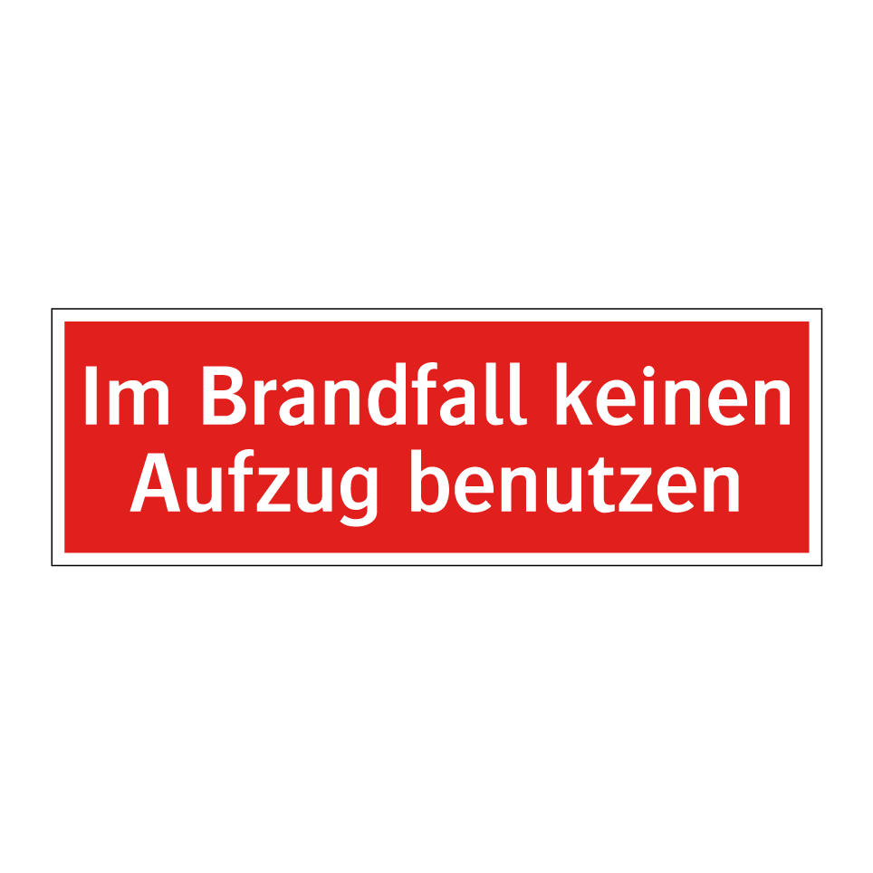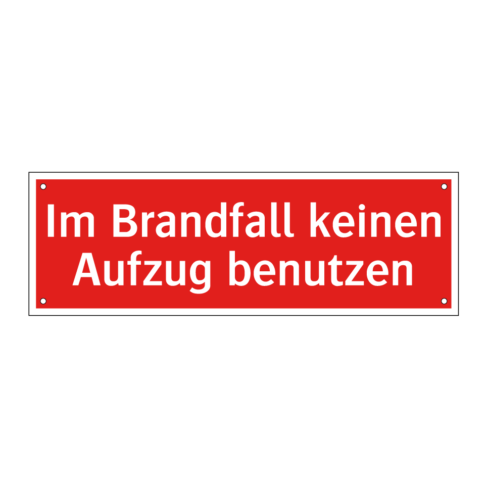 Brandschutzschild mit dem Text Im Brandfall keinen Aufzug benutzen