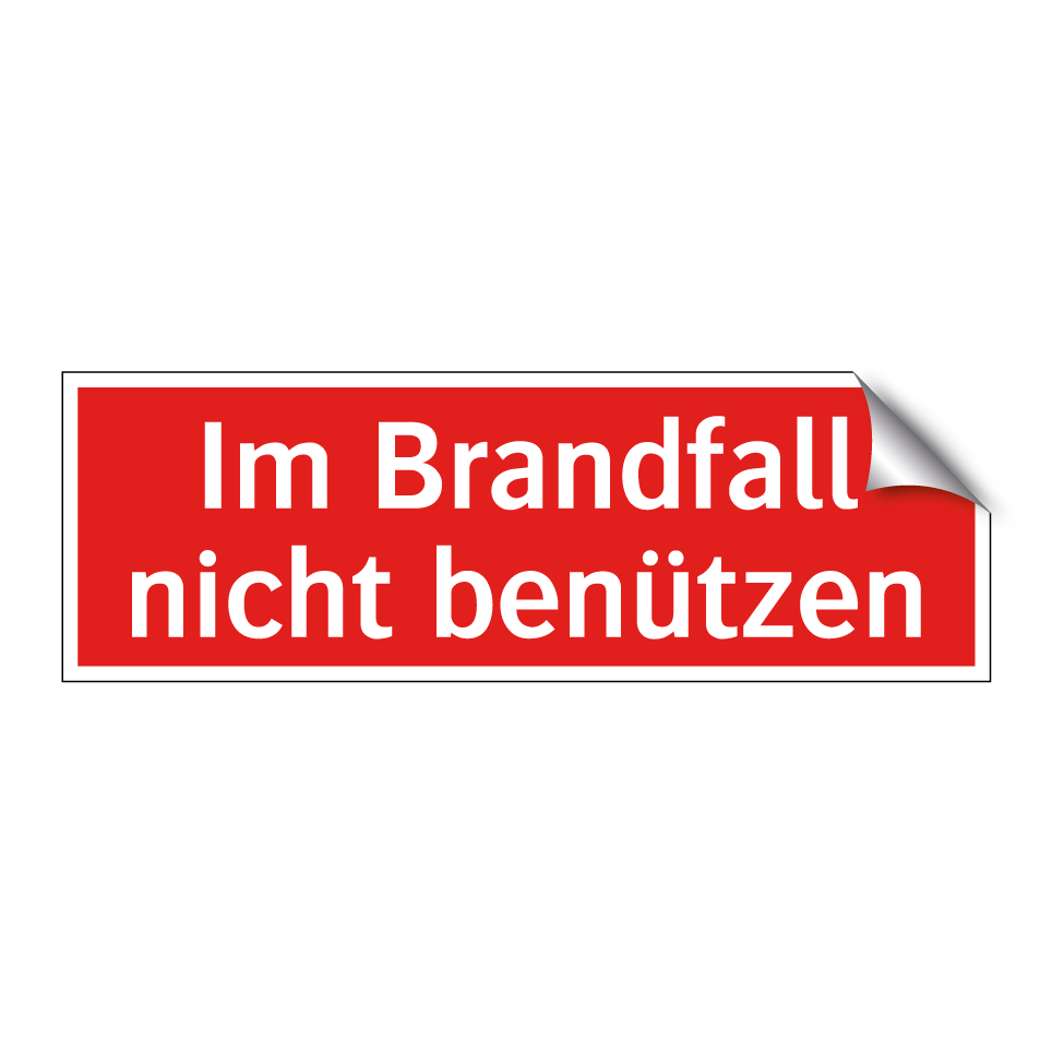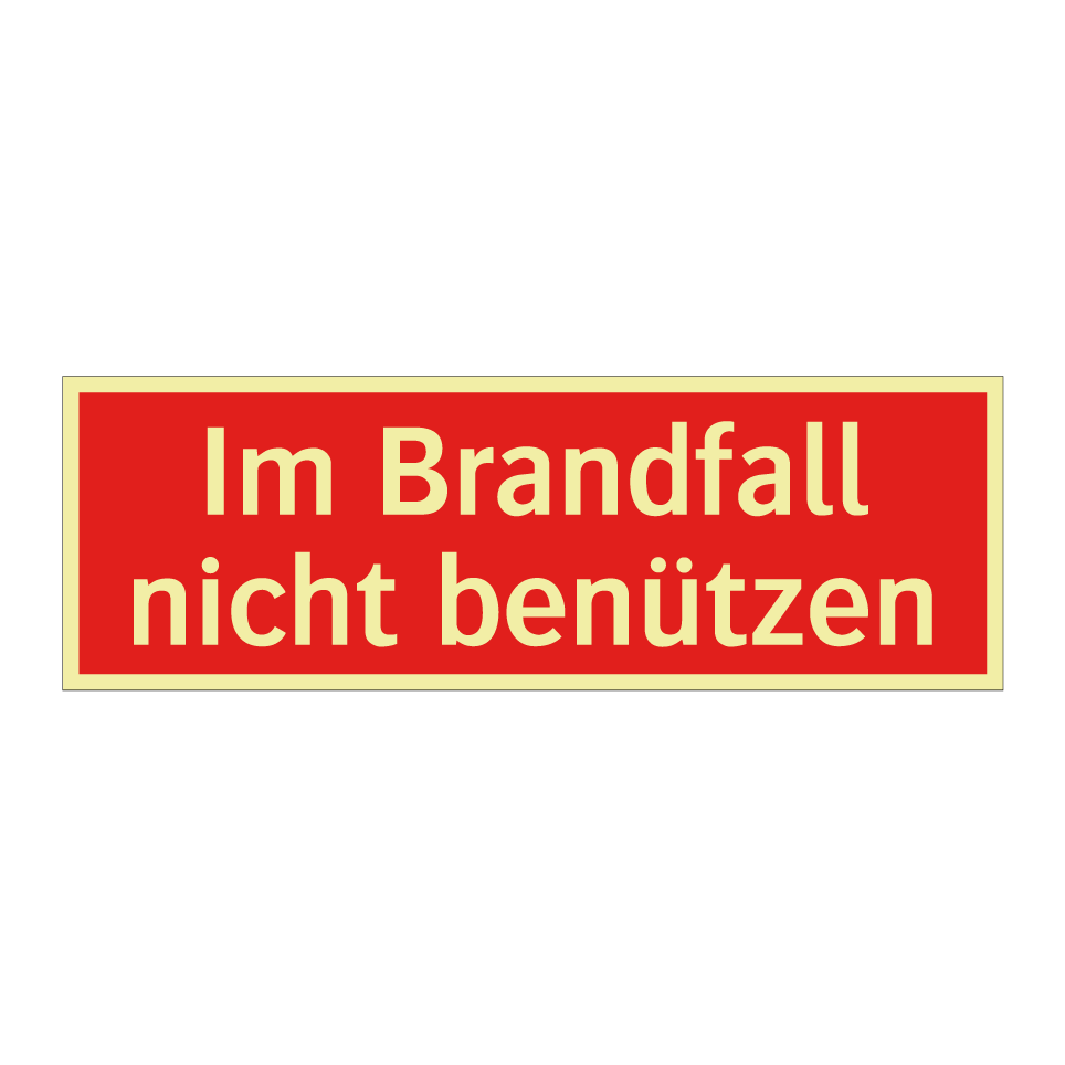 Brandschutzschild mit dem Text Im Brandfall nicht benützen