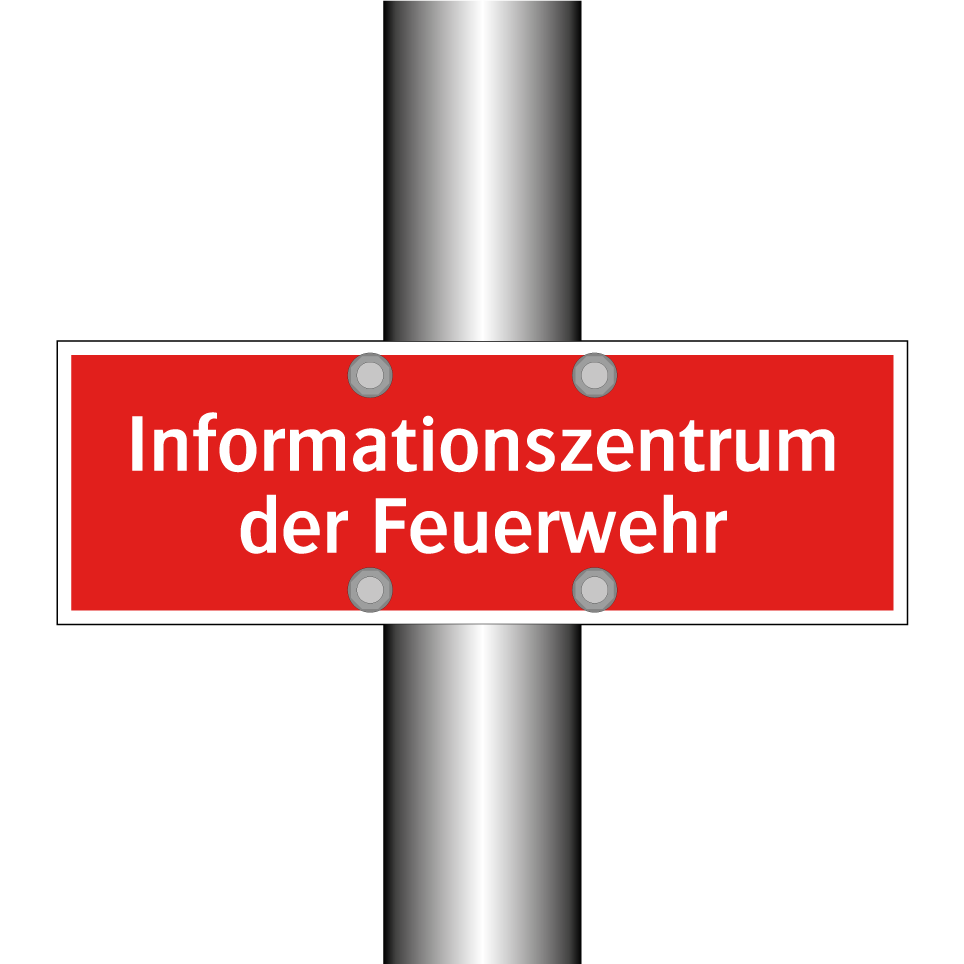 Brandschutzschild mit dem Text Informationszentrum der Feuerwehr