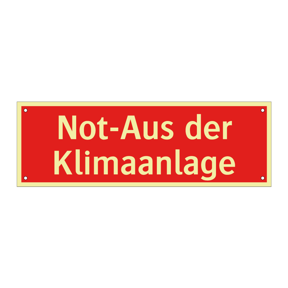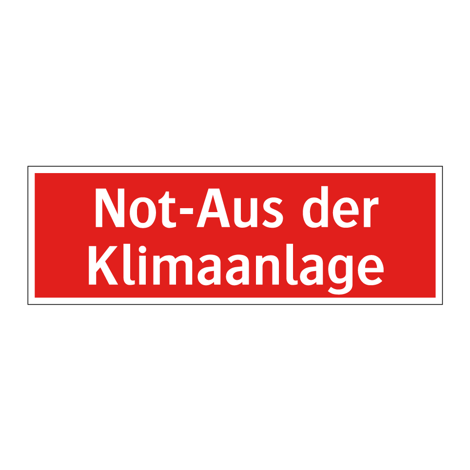 Brandschutzschild mit dem Text Not-Aus der Klimaanlage
