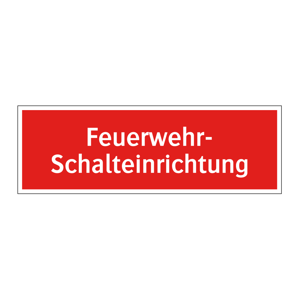 Brandschutzschild mit dem Text Feuerwehr- Schalteinrichtung