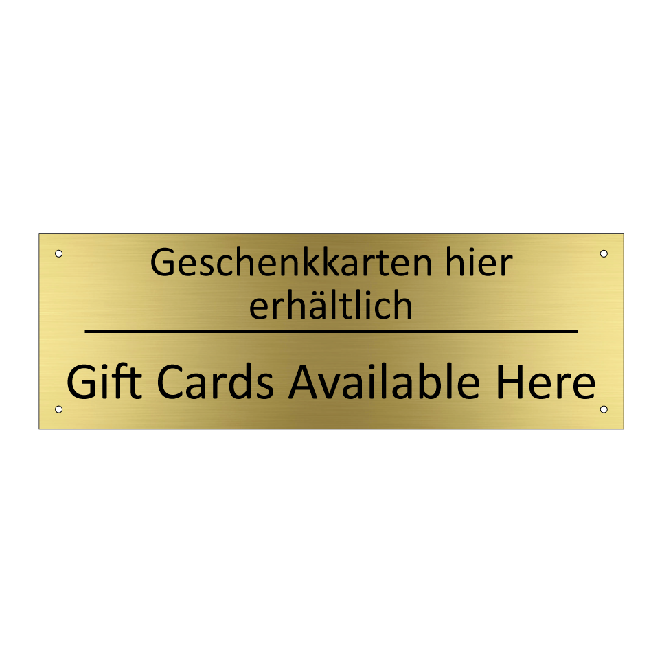 Geschenkkarten hier erhältlich - Gift Cards Available Here