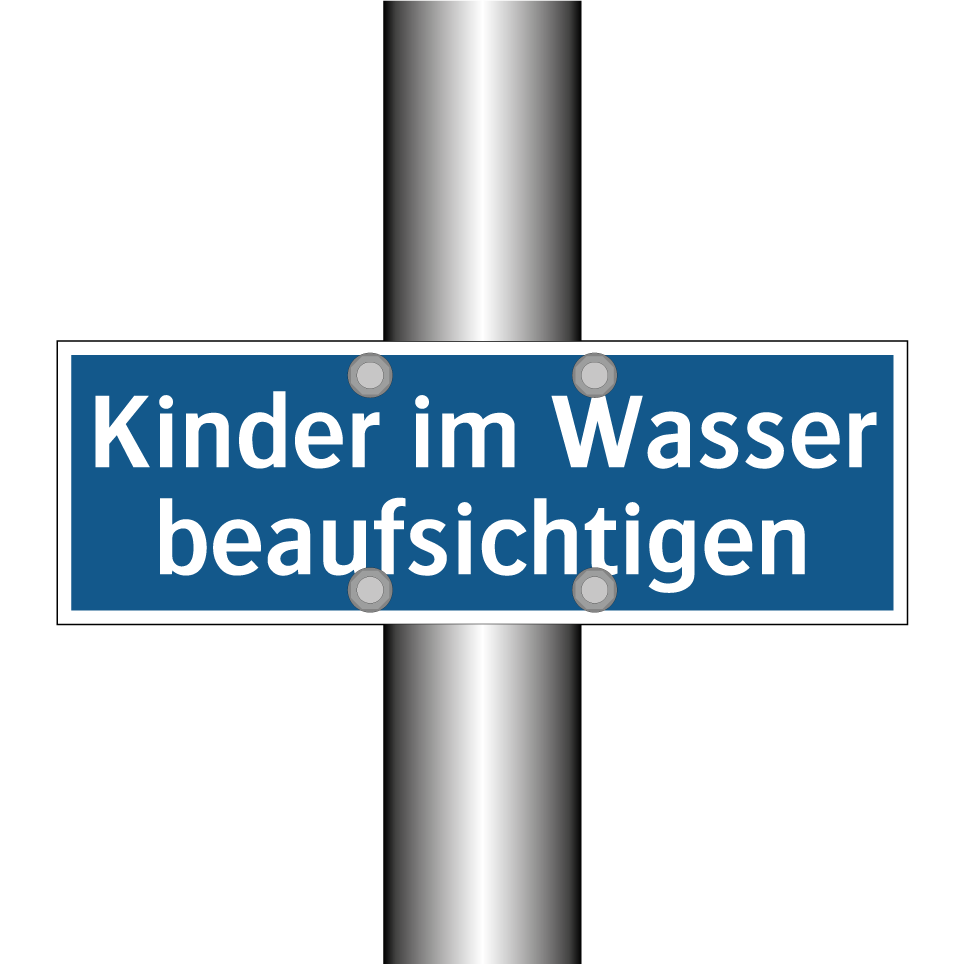 Gebotsschild mit dem Text Kinder im Wasser beaufsichtigen