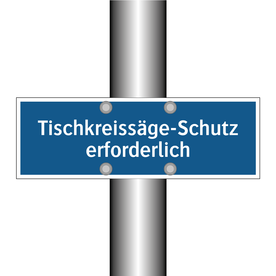Gebotsschild mit dem Text Tischkreissäge-Schutz erforderlich