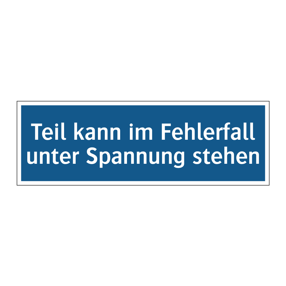 Gebotsschild mit dem Text Teil kann im Fehlerfall unter Spannung stehen
