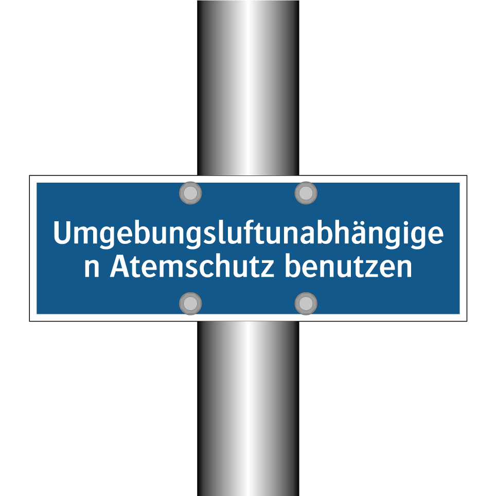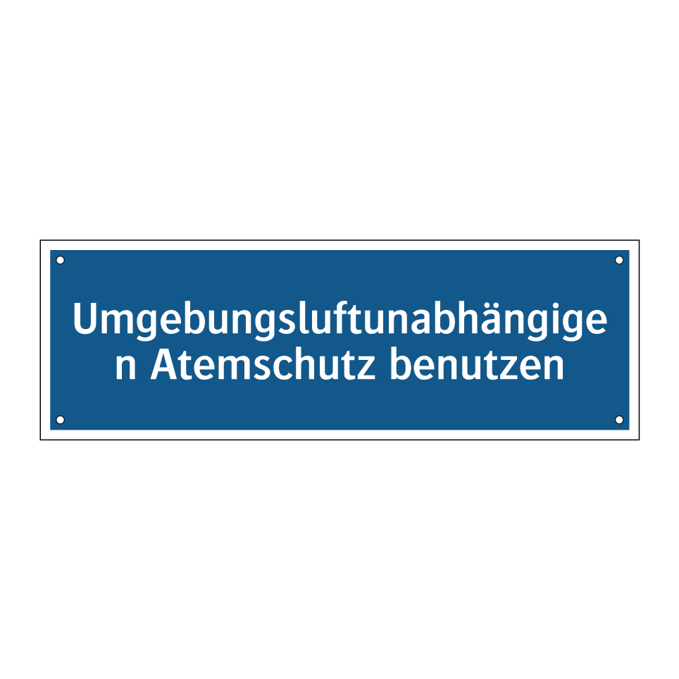 Gebotsschild mit dem Text Umgebungsluftunabhängigen Atemschutz benutzen