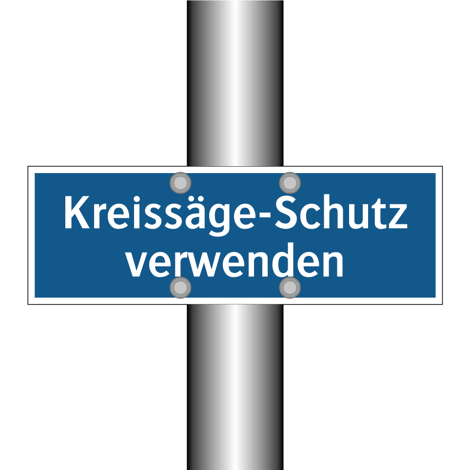 Gebotsschild mit dem Text Kreissäge-Schutz verwenden