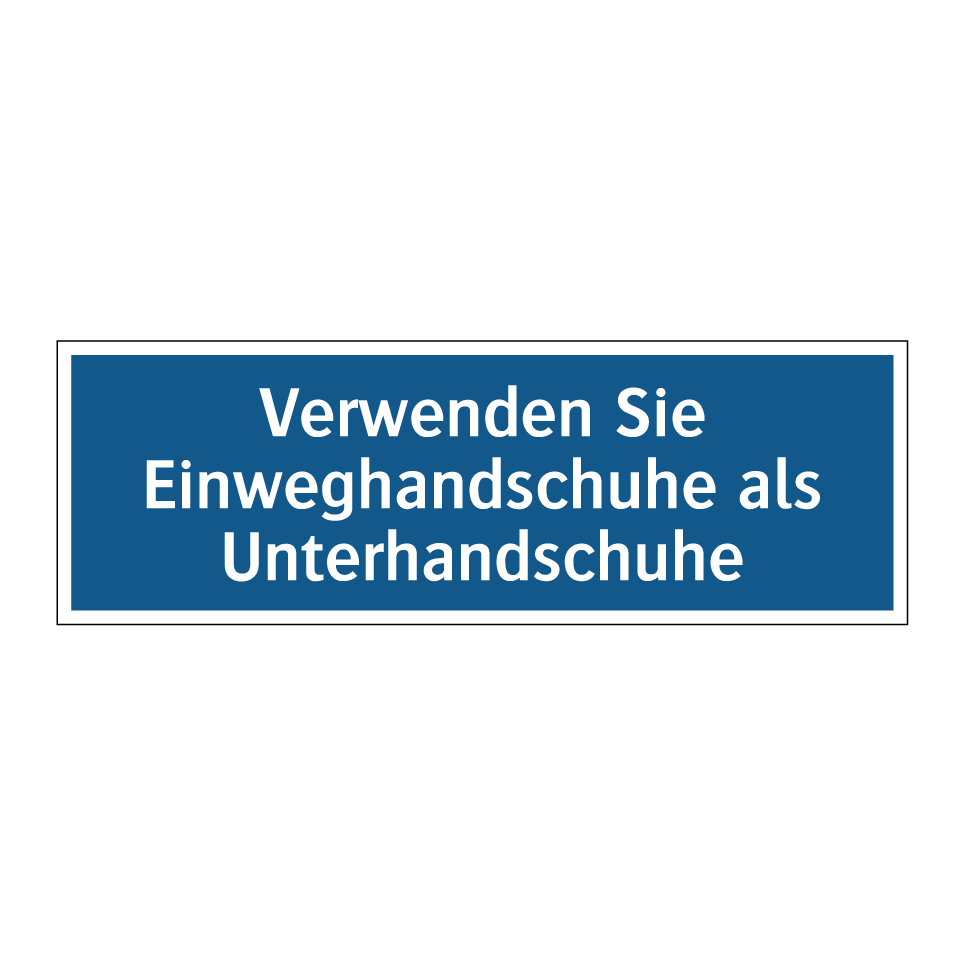 Gebotsschild mit dem Text Verwenden Sie Einweghandschuhe als Unterhandschuhe