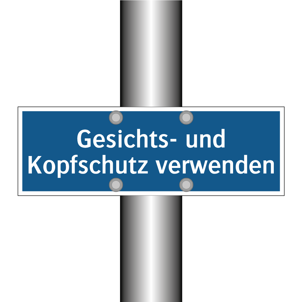 Gebotsschild mit dem Text Gesichts- und Kopfschutz verwenden