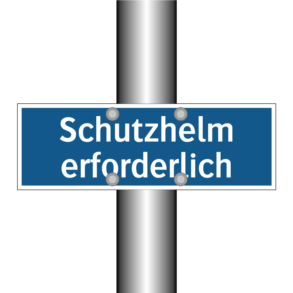 Gebotsschild mit dem Text Schutzhelm erforderlich