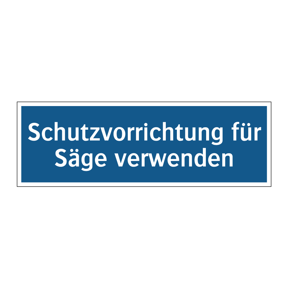 Gebotsschild mit dem Text Schutzvorrichtung für Säge verwenden