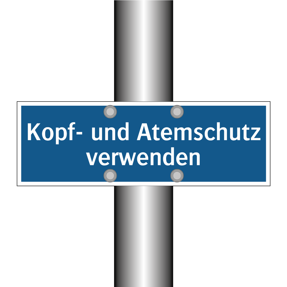 Gebotsschild mit dem Text Kopf- und Atemschutz verwenden