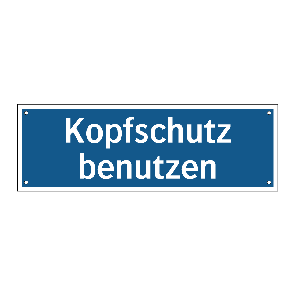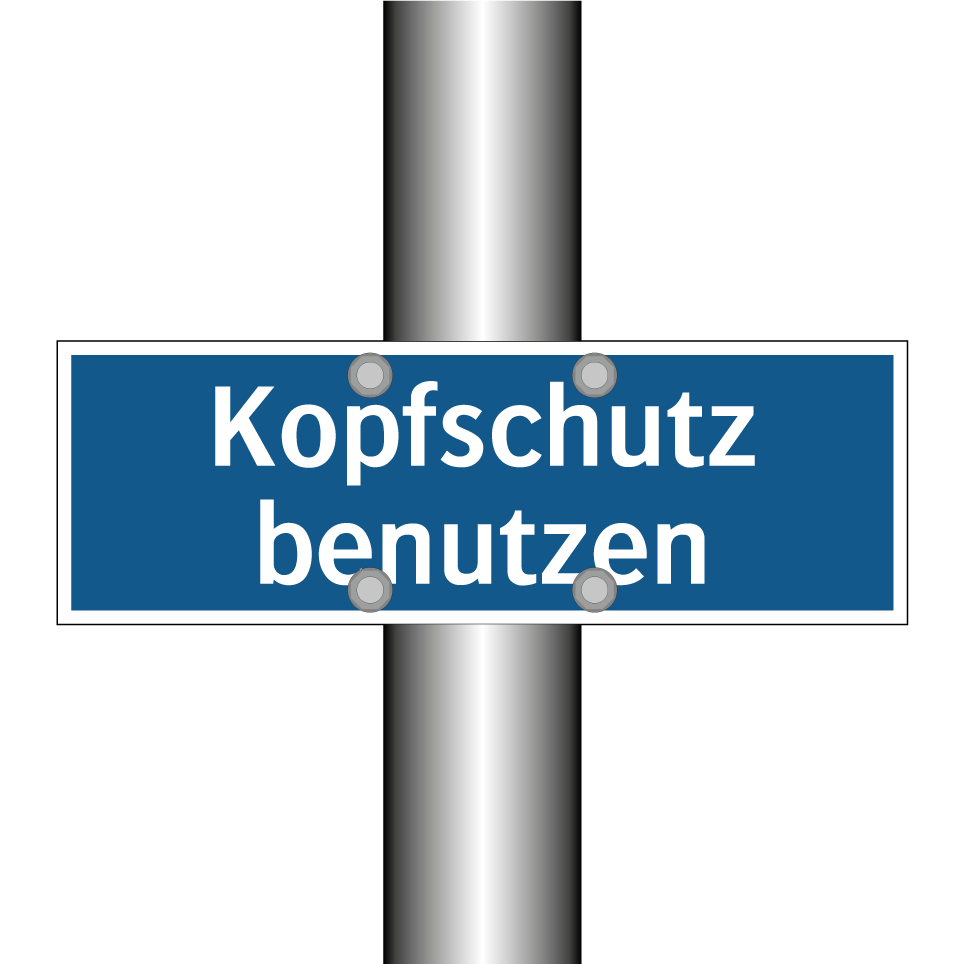 Gebotsschild mit dem Text Kopfschutz benutzen