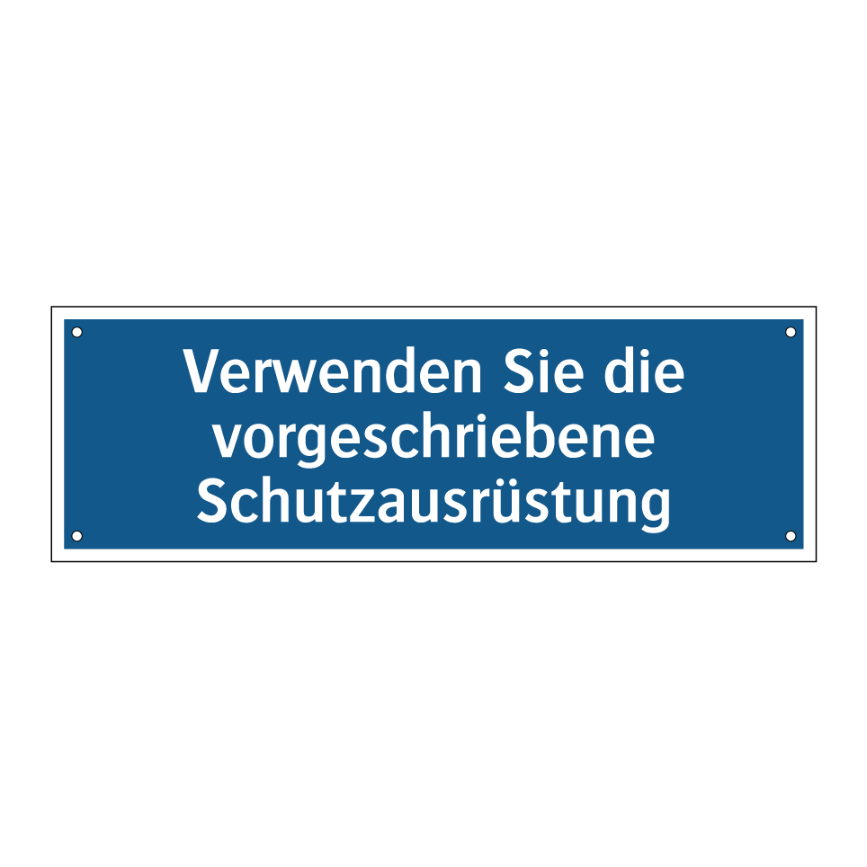 Diese Gebotsschild mit blauem Hintergrund und weißer Schrift ist ein unverzichtbares Element für die Sicherheit am Arbeitsplatz. Sie erinnert daran, die vorgeschriebene Schutzausrüstung zu tragen, um Unfälle zu vermeiden und die Gesundheit der Mitarbeiter zu schützen. Ideal für den Einsatz in industriellen Umgebungen, Baustellen oder Laboren, wo spezifische Schutzmaßnahmen erforderlich sind. Diese Sicherheitsanweisung kann an Eingängen, in Produktionsbereichen oder in der Nähe von Maschinen angebracht werden, um sicherzustellen, dass alle Personen die notwendigen Schutzvorkehrungen treffen. Die klare und deutliche Gestaltung sorgt dafür, dass die Botschaft nicht übersehen wird.